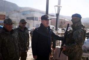 Merkez üssü Kahramanmaraş’ın Pazarcık ve Elbistan ilçeleri olan ve 11 ili etkileyen “asrın felaketi”nin hemen ardından beraberindeki Genelkurmay Başkanı Orgeneral Yaşar Güler ve Kara Kuvvetleri Komutanı Musa Avsever ile Hatay’a gelen Millî Savunma Bakanı Hulusi Akar, kentteki nöbet, devriye, arama kurtarma ve yaşam destek faaliyetlerini ilk günden itibaren yerinde takip etmeyi sürdürüyor.