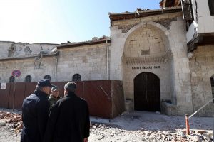 Depremin zarar verdiği tarihî Ulu Camii ve Habib-i Neccar Camii’nde incelemelerde bulunan, yetkililerden bilgi alan Bakan Akar, Antakya’da depremin ardından başlatılan çalışmaları da yerinde inceledi.